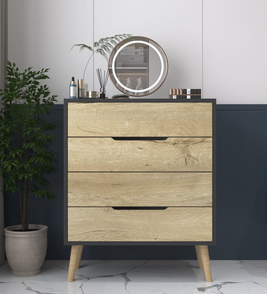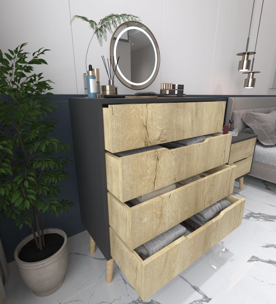 HANAH HOME Komoda Flora Anthracite Sapphire Oak