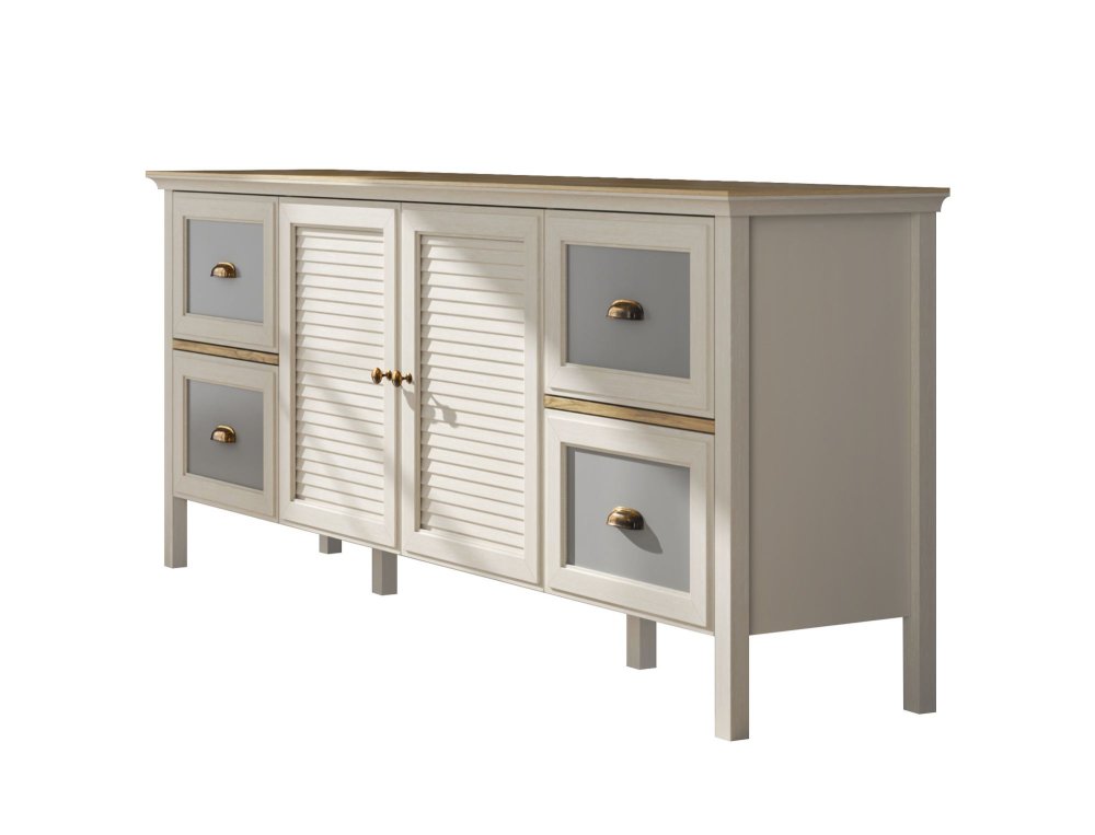 | Specifikacija | Komoda Materijal: 100% Iverica presvučena melaminom Debljina iverice: 18 mm Materijal vrata: 100% Medijapan Materijal nogara: Medijapan Materijal ručke: Metal Ivična traka: 0.8 mm Dimenzije: Širina: 184.8 cm Visina: 82 cm Dubina: 44 cm Visina nogara: 15 cm Dodatne funkcionalnosti: Više polica, mogućnost fiksiranja za zid |