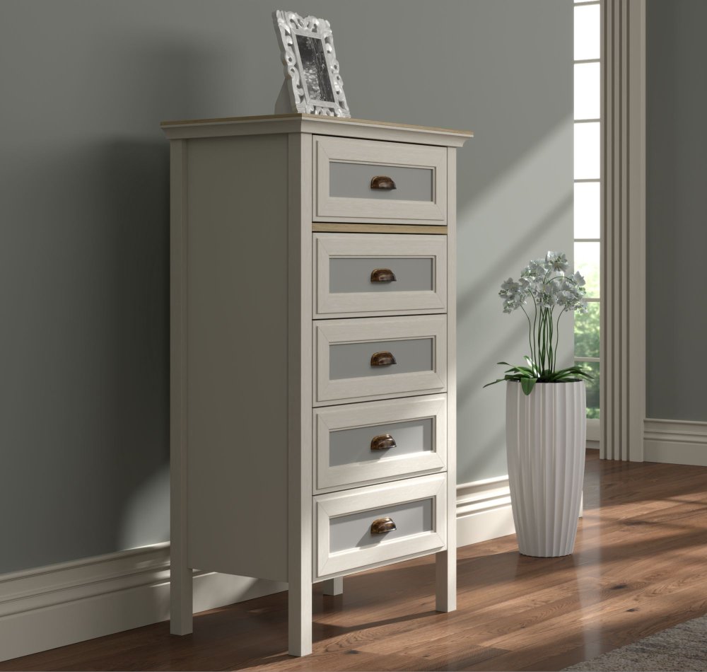 | Specifikacija | Komoda Materijal: 100% Iverica presvučena melaminom Debljina iverice: 18 mm Materijal vrata: 100% Medijapan Materijal nogara: Medijapan Materijal ručke: Metal Ivična traka: 0.8 mm Dimenzije: Širina: 63.4 cm Visina: 116 cm Dubina: 42.1 cm Visina nogara: 15 cm Dodatne funkcionalnosti: Više polica, mogućnost fiksiranja za zid |