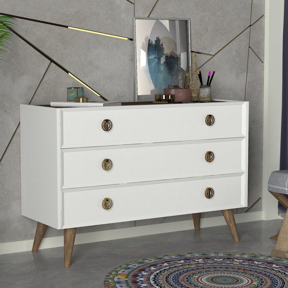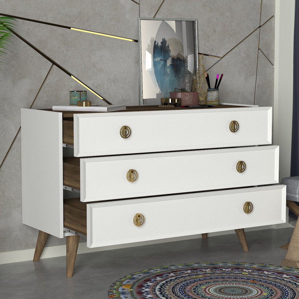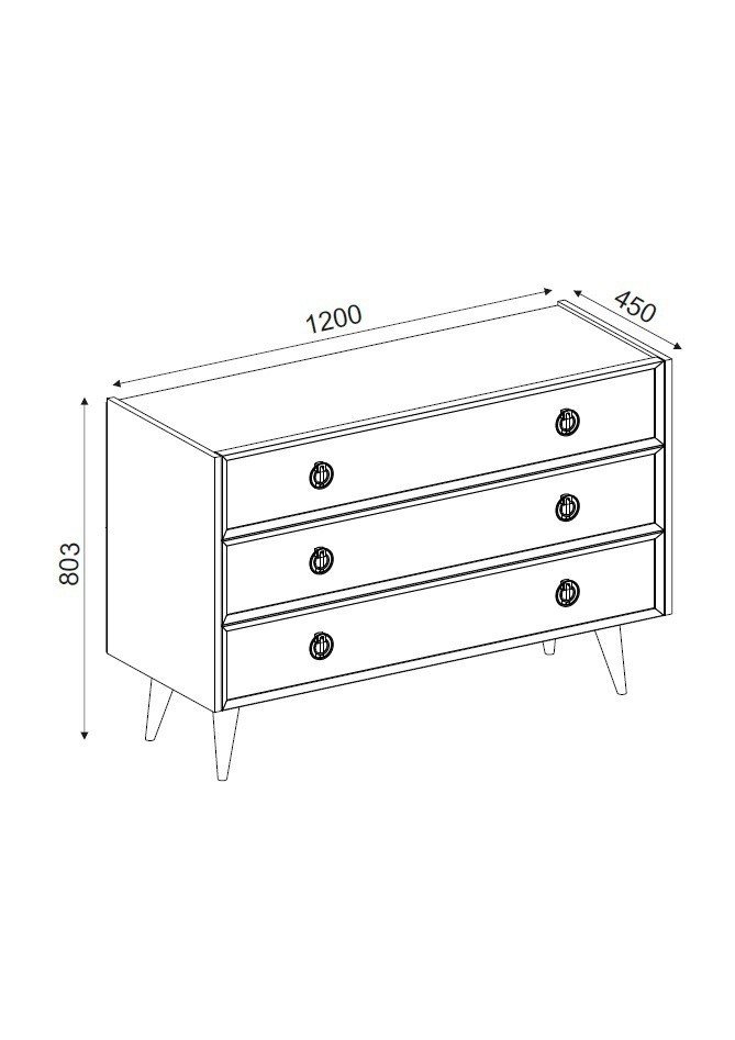 Specifikacija | Komoda Materijal: 100% oplemenjena iverica Debljina iverice: 18 mm Dimenzije: Širina: 120 cm Visina: 80,3 cm Dubina: 45 cm Broj fioka: 3 Više polica Dodatni prostor za odlaganje Može se montirati na zid Broj paketa za isporuku: 2 1.paket: 125,8 x 47,5 x 17,3 cm / 30 kg 2.paket: 66,3 x 50,5 x 15,6 cm / 13 kg |