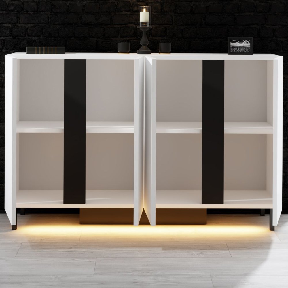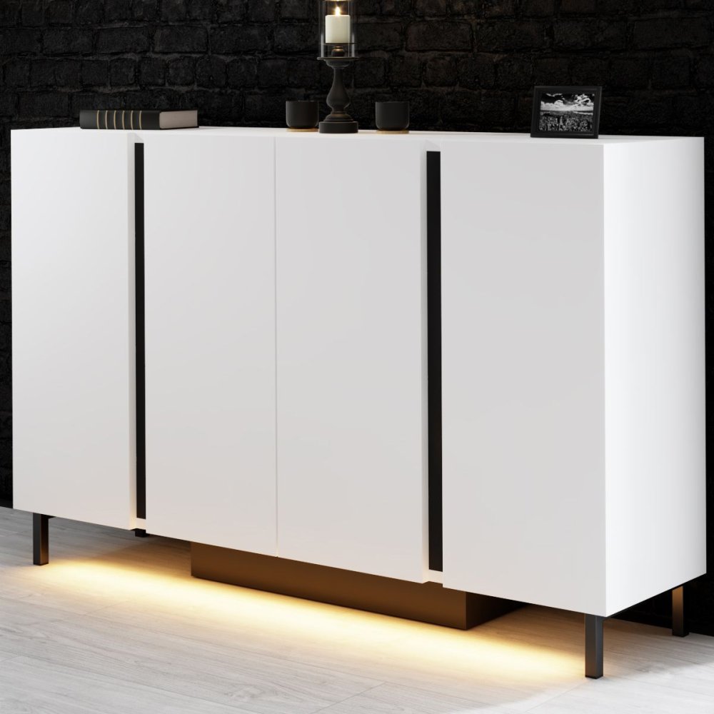 | Specifikacija | Komoda Paris White 100% IVERICA OBLOŽENA MELAMINOM Debljina: 18 mm PVC ivica Metalne nogare (20 x 20 mm) Širina: 127 cm Visina: 80 cm Dubina: 32 cm Visina nogara: 10 cm LED sistem osvetljenja (12 V adapter za napajanje) RGB daljinski upravljač Nosivost: 45/50 kg Rastavljeno. Broj pakovanja: 1 35 x 147 x 20 cm / 37,7 kg (1 komad) |