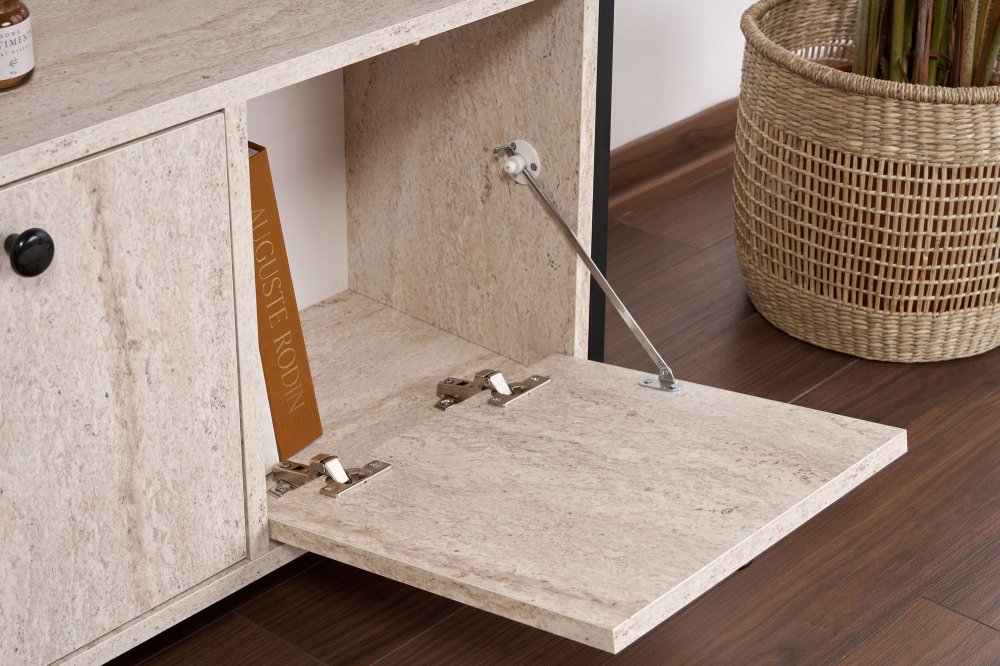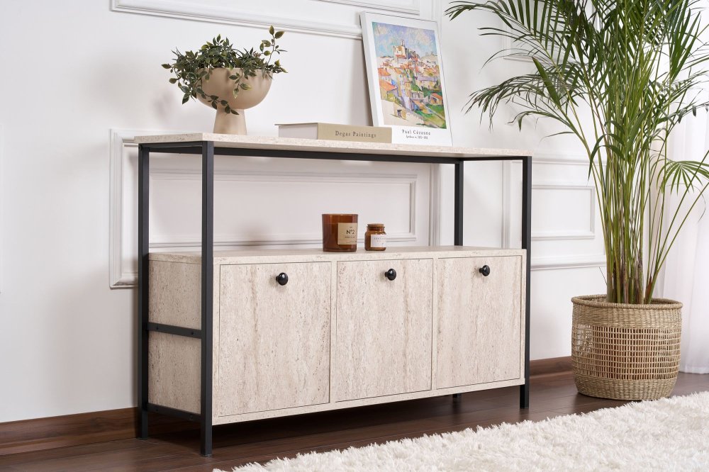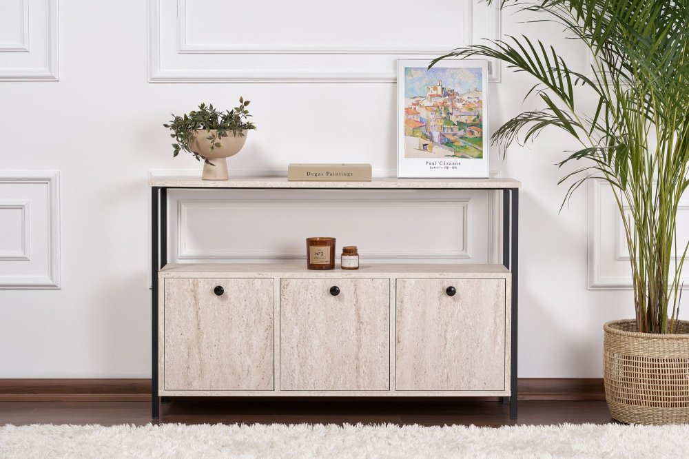 | Specifikacija | Komoda Solace Travertine Black 100% IVERICA SA MELAMINOM PREMAZANA Elektrostatičko praškasto farbanje PVC ivice (debljina: 0,4 mm) Metalni profil (debljina: 1 mm) Veličina metalnog profila: Širina: 20 mm Dubina: 30 mm Veličina konzole: Širina: 120 cm Visina: 77 cm Dubina: 30 cm Broj pakovanja: 1 133 x 47,5 x 20,5 cm / 26,85 kg (1 komad) |