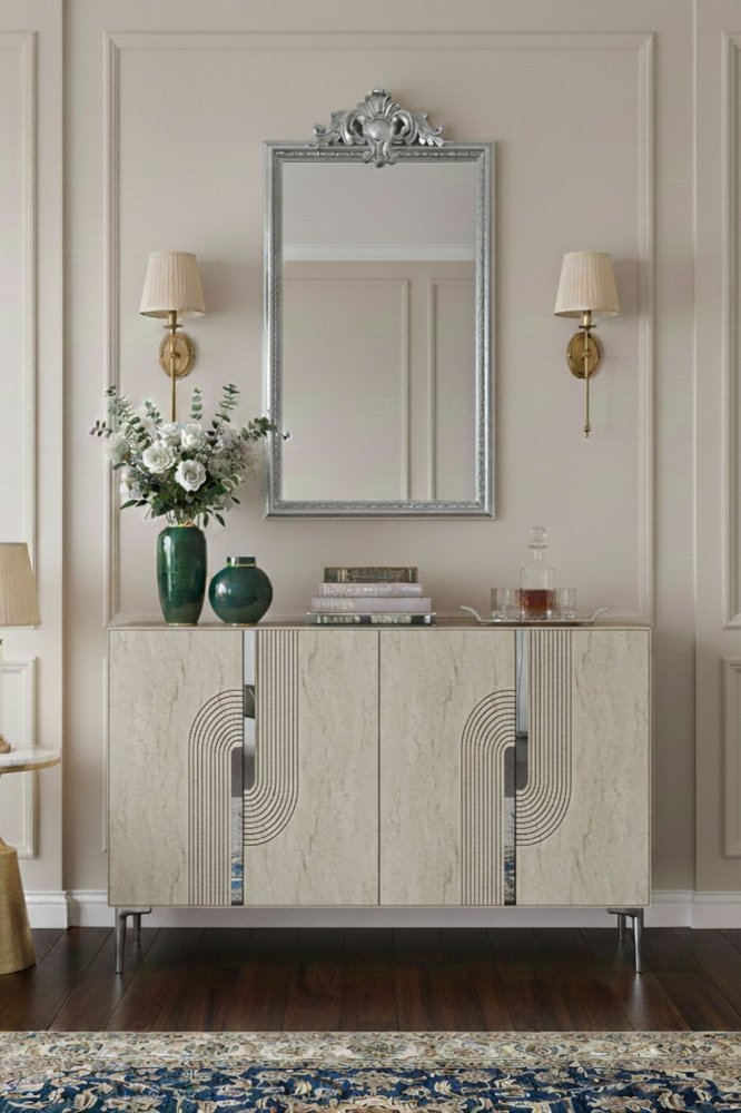 HANAH HOME Konzola Meyra 120 White Travertine Silver