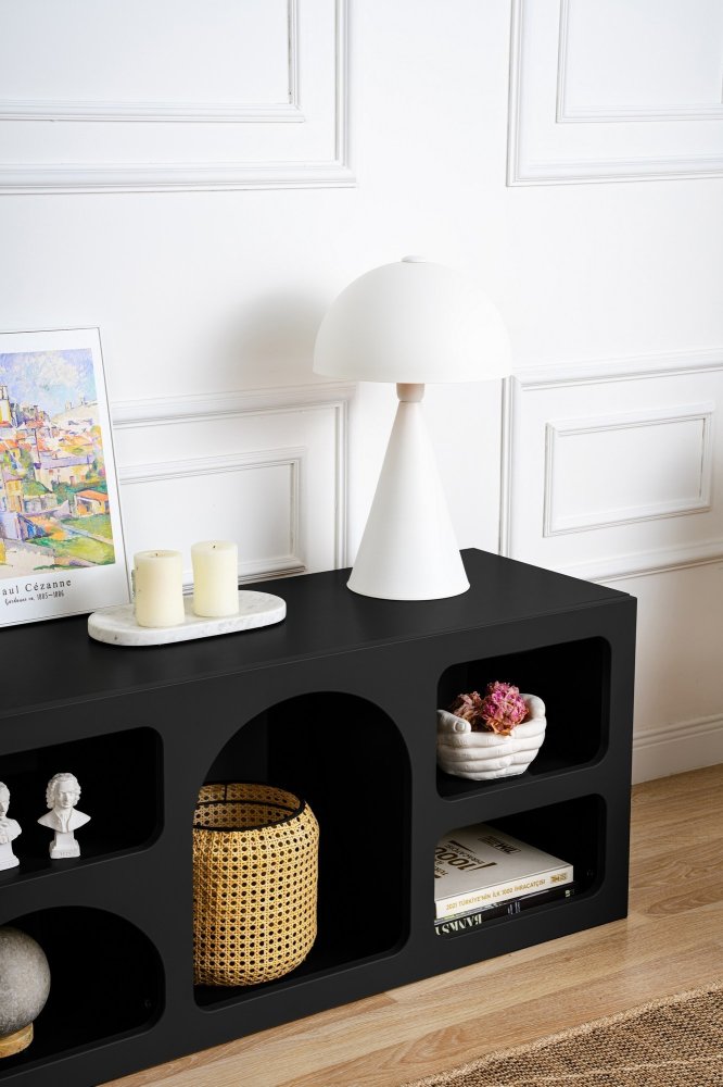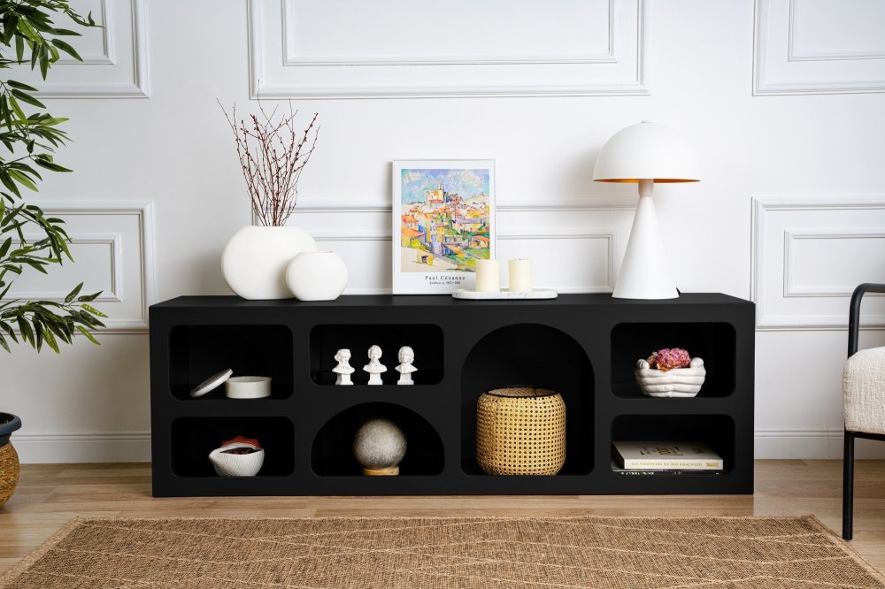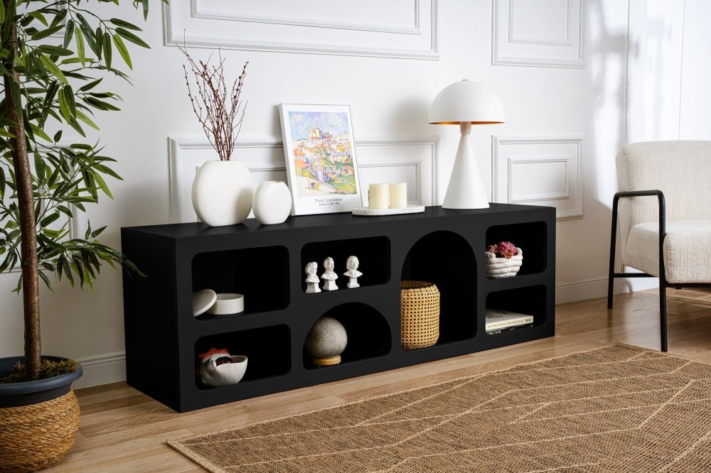 Samostojeća komoda Ferlis Black predstavlja moderan i funkcionalan komad nameštaja koji se savršeno uklapa u savremene enterijere. Zahvaljujući minimalističkom dizajnu i elegantnoj crnoj boji, lako se kombinuje sa različitim stilovima uređenja – od modernog i индустријskog do skandinavskog.
