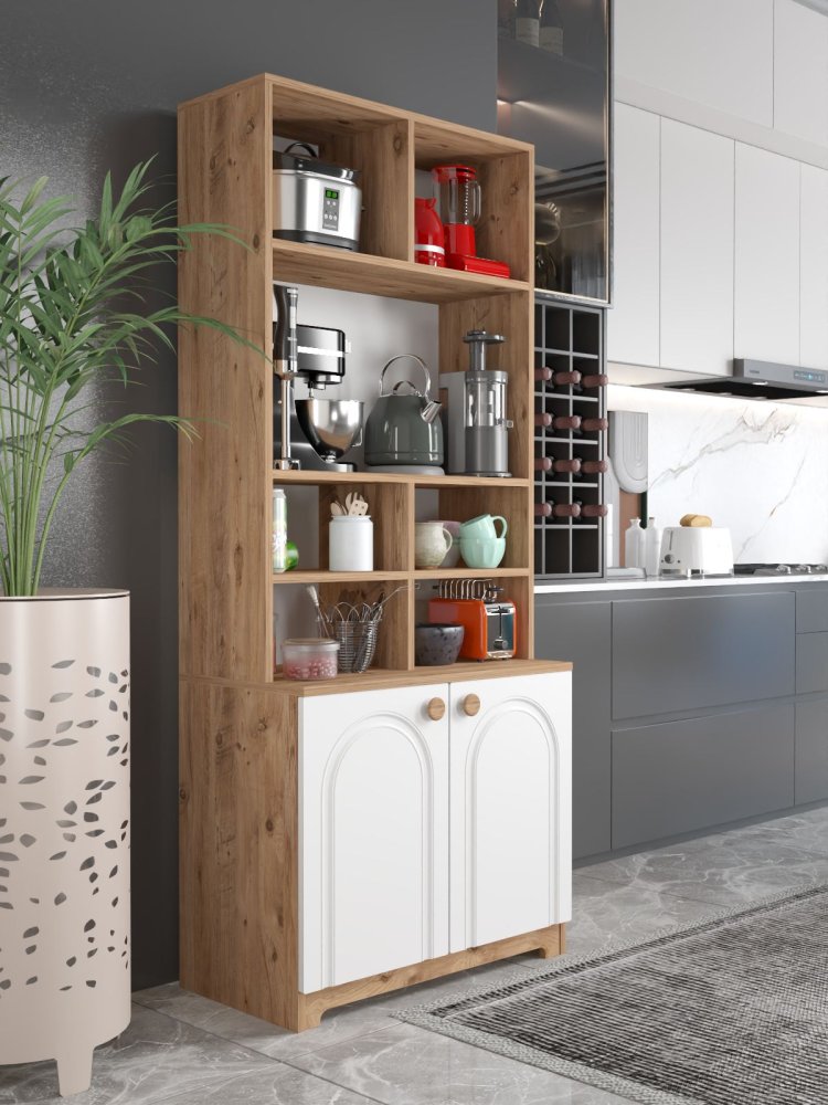 Višenamenska polica Lunora Atlantic Pine Bela donosi savršen spoj prirodnog izgleda drveta i moderne elegancije. Kombinacija dekora Atlantic Pine (svetli bor) i bele boje daje prostoru toplinu, svetlinu i vizuelnu lakoću. Zahvaljujući svom jednostavnom, ali sofisticiranom dizajnu, polica Lunora se lako uklapa u različite tipove enterijera – od klasičnih do savremenih, bilo da se koristi u dnevnoj sobi, radnoj sobi, spavaćoj sobi ili kancelariji.