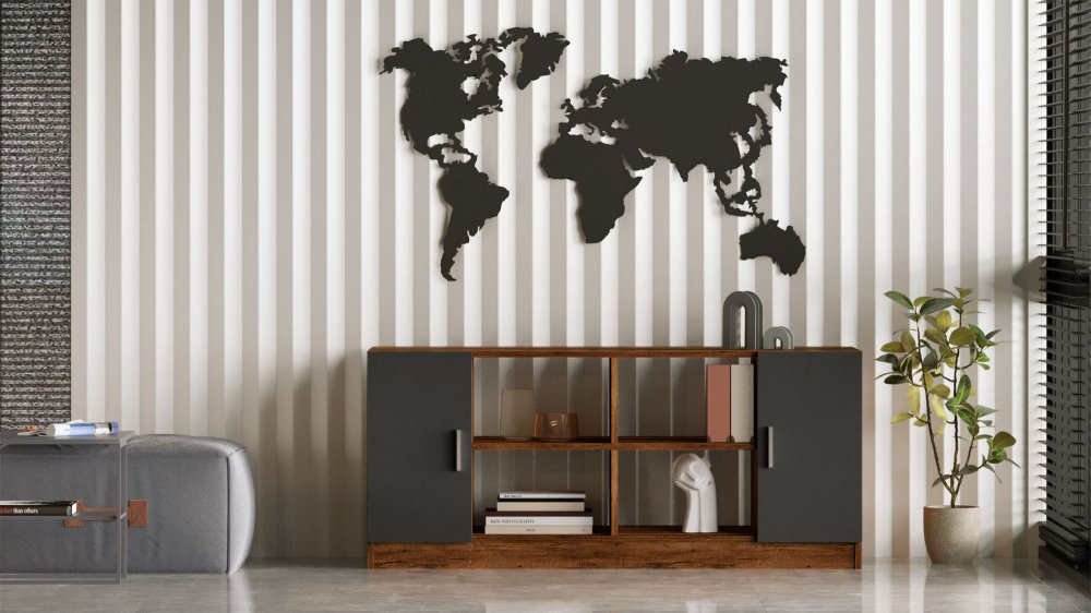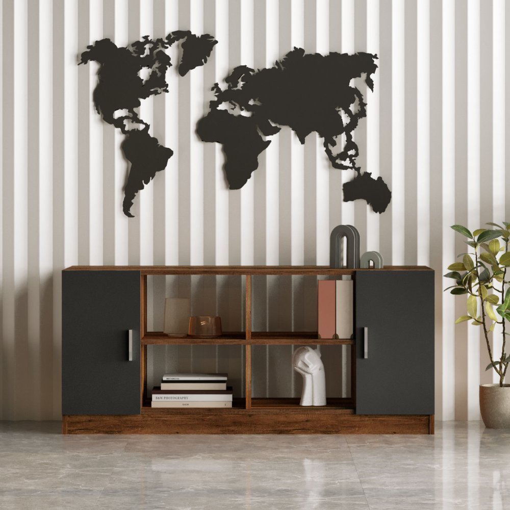 Višenamenska polica Orah Antracit Vo6 kombinuje funkcionalnost i moderan dizajn, pružajući praktično rešenje za organizaciju prostora u dnevnim sobama, radnim prostorima ili hodnicima. Elegantna kombinacija orah dekora i antracit detalja unosi toplinu i sofisticirani kontrast u enterijer, dok minimalistički oblik čini policu vizuelno laganom i pogodnom za različite stilove uređenja.