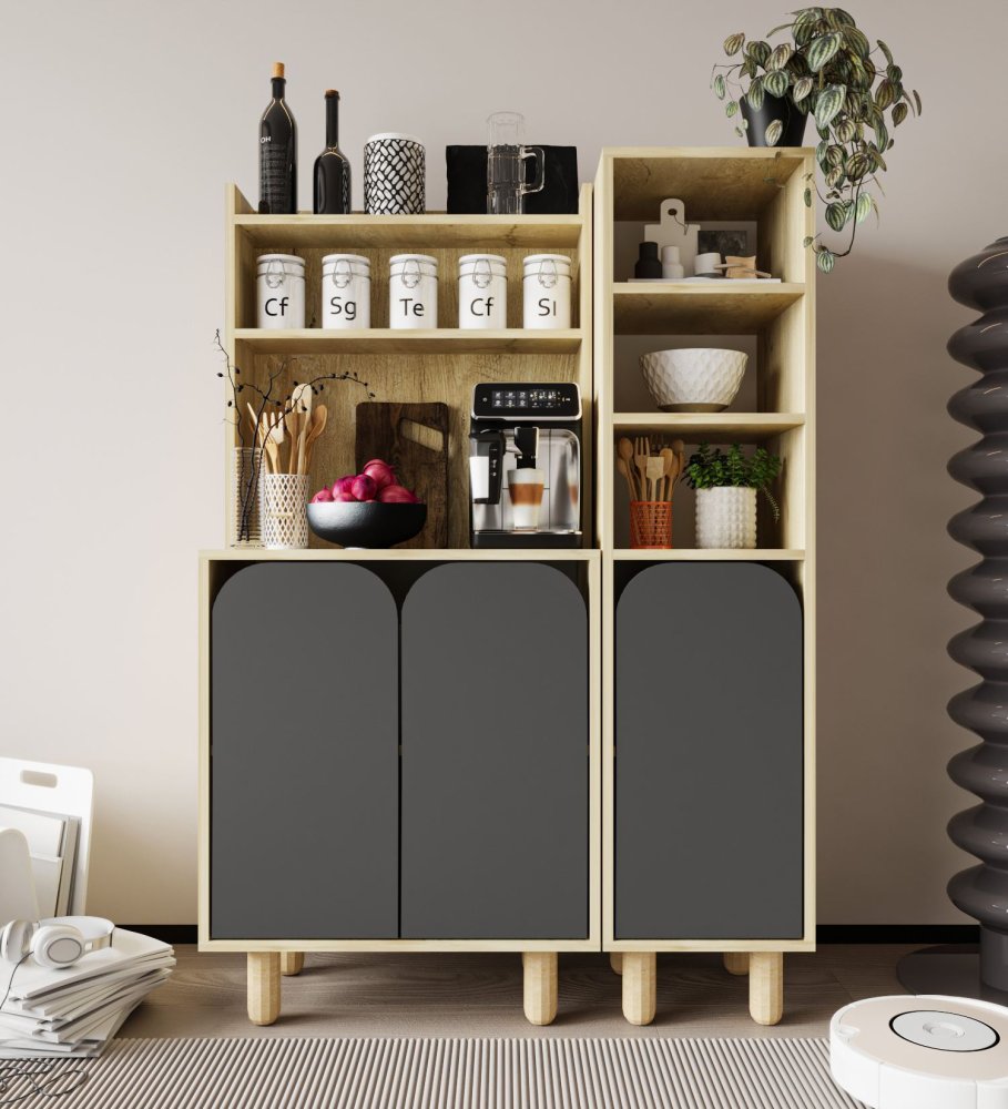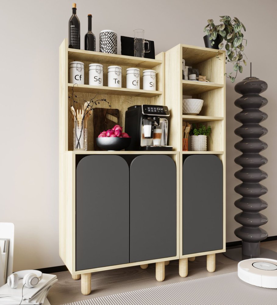 Više otvorenih polica različitih visina omogućavaju odlaganje knjiga, dekorativnih predmeta, posuda ili dokumenata.
