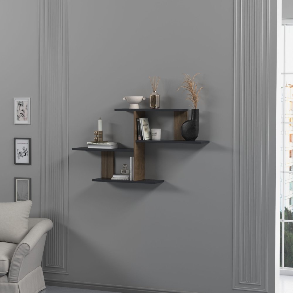 HANAH HOME Zidna polica Sitil Anthracite Walnut
