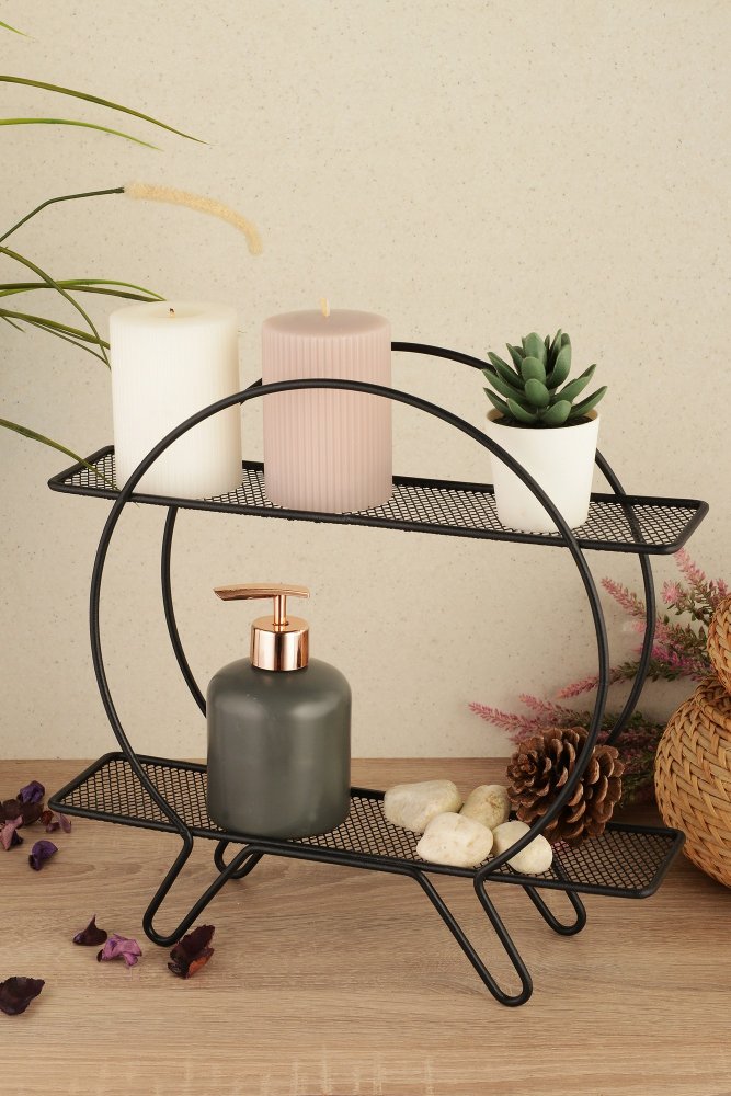 Ova dekorativna polica dimenzija 35 x 33 x 10 cm unosi industrijski i savremen karakter u svaki enterijer. Sa dve funkcionalne police raspoređene na visini od 22,5 cm, idealna je za odlaganje sitnih predmeta, biljaka, ukrasa ili knjiga. Njena čista forma i crni metal doprinose urednom, ali upečatljivom izgledu zida.