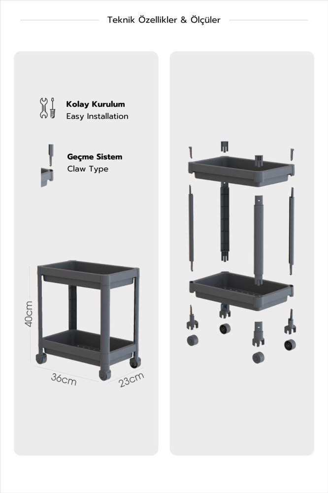 Set višenamenskih polica izrađen je u potpunosti od plastike, što ga čini laganim, izdržljivim i jednostavnim za održavanje. Idealan je za upotrebu u kuhinji, kupatilu, kancelariji ili dečijoj sobi, kao pomoćno rešenje za organizaciju svakodnevnih sitnica.