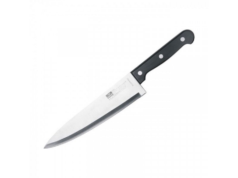 Kuhinjski nož DOMY jedan je od svima neophodnih elemenata kuhinjskog pribora. Reč je o veoma kvalitetnom proizvodu, izrađenom od neškodljivih materijala. Kuhinjski nož DOMY biće vam uvek pri ruci. Godinama, pošto ga karakterišu dugotrajnost i postojana oštrina sečiva. Osim toga, kuhinjski nož DOMY se veoma jednostavno pere, pošto je pogodan i za mašine za sudove.