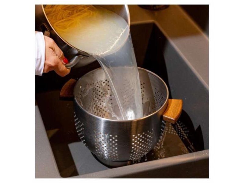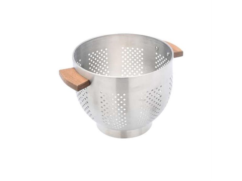 | Karakteristike | Materijal: Nerđajući čelik Materijal drške: Drvo Boja: Inox Dužina: 22 cm Širina: 22 cm Visina: 18 cm Neto težina: 530 g Napomena: Ne može se prati u mašini za pranje sudova |