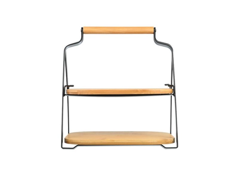 Poslužavnik za serviranje na dva nivoa Estia ES01-20811 elegantno je i praktično rešenje za moderno serviranje hrane. Ovaj dvonivozni poslužavnik omogućava bolju organizaciju i više prostora, idealan je za doručak, posluženje gostiju ili švedski sto. Poslužavnik za serviranje na dva nivoa Estia ES01-20811 izrađen je od kombinacije bambusa i metala, što ga čini stabilnim, izdržljivim i estetski privlačnim. Njegov moderan dizajn u kombinaciji prirodne boje drveta i crne metala lako se uklapa u svaki enterijer. Dva nivoa omogućavaju pregledno i originalno serviranje različitih jela ili grickalica. Osim funkcionalnosti, ovaj poslužavnik unosi toplinu i stil u vaš sto.