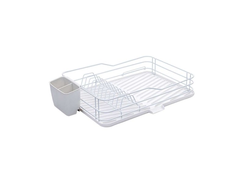 | Karakteristike | Oceđivač za sudove 01-9601 unikatnog i zanimljivog dizajana idelano za male i uske prostore. Oceđivač za sudove je izrađen od izdržljivog metalnog materijala, elegantne bele boje, idealna za manju količinu sudova. Oceđivač poseduje odvojivi oceđivač pribora za jelo dupli, kao i tacnu koja nudi dodatnu stabilnost. |