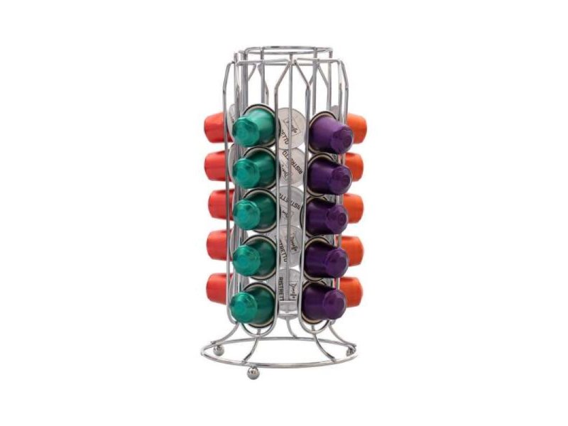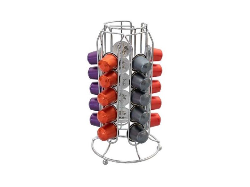 | Karakteristike | Praktični rotirajući stalak za 30 kapsula za kafu. Stalak vam pomaže da uštedite prostor i na veoma moderan i praktičan način organizujete svoje kapsule. Uvek možete da vidite koliko imate, pa vam pomaže da kupite na vreme i nikad ne ostanete bez omiljene kafe. Stalak je napravljen od metala i može dugo da traje. Lako se uklapa sa ostatkom kuhinjskih elemenata. |