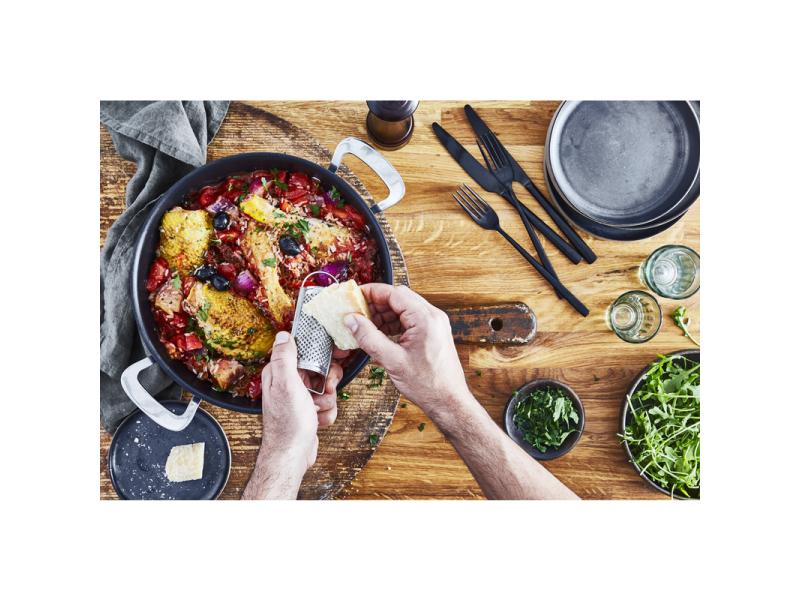 | Karakteristike | Tefal šerpa je izrađena od visokokvalitetnog aluminijuma, što joj obezbeđuje dug vek trajanja i otpornost na svakodnevnu upotrebu. Aluminijum omogućava brzo zagrevanje i ravnomernu raspodelu toplote, čime se skraćuje vreme kuvanja i čuva ukus hrane. Zahvaljujući naprednoj Thermo-Fusion tehnologiji, toplota se efikasno i ravnomerno širi po dnu šerpe, obezbeđujući savršene rezultate kuvanja. Bez obzira da li pripremate supe, variva ili testeninu, ova tehnologija garantuje optimalnu kontrolu temperature. Šerpa dolazi sa poklopcem koji omogućava brže kuvanje i očuvanje svih aroma hrane. Poklopac pomaže i u održavanju toplote, čime se smanjuje potrošnja energije i vreme potrebno za pripremu jela. Uz prečnik od 26 cm, šerpa pruža dovoljno prostora za pripremu obroka za celu porodicu. Crna boja i elegantan izgled uklapaju se u svaku kuhinju, dok funkcionalni dizajn olakšava svakodnevnu upotrebu. Laka je za održavanje i čišćenje, što dodatno doprinosi praktičnosti. |
