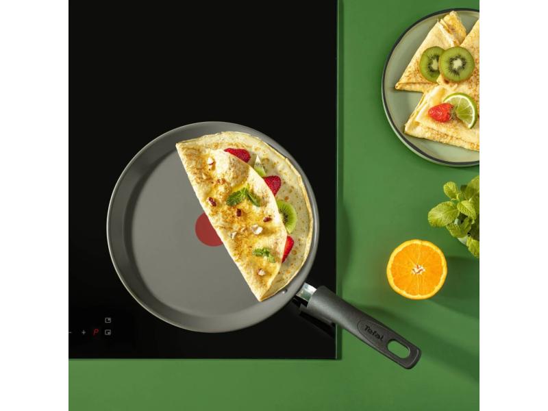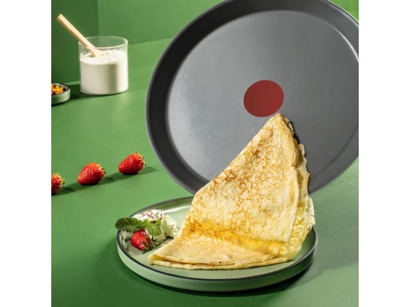 | Karakteristike | Pecite najukusnije palačinke i krepove u ovoj tiganju za palačinke Tefal. Termo-signal vam pokazuje tačno kada je tiganj dovoljno zagrejan da počnete s pečenjem. Na taj način poslužićete najpuhastije, zlatno-braon palačinke. Ukusno! Tiganj za palačinke ima dimenzije V 6,1 × Ø 25 cm. Obezbeđen je jak i izdržljiv premaz. Nakon upotrebe može jednostavno da se stavi u mašinu za sudove — praktično! Netalpajući premaz je bez PFOA.” |