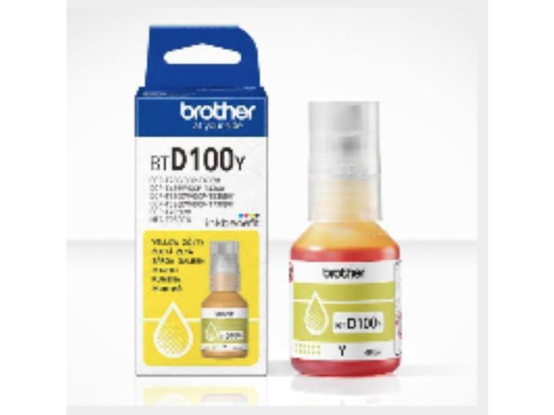 | Karakteristike | Original Brother BTD100Y žuto mastilo specijalno je dizajnirano za upotrebu u Brother inkjet štampačima. Mastilo namenjeno za sledeće modele Brother inkjet štampača: DCP-T230, DCP-T430W, DCP-T435W, DCP-T436W, DCP-T530DW, DCP-T535DW, DCP-T536DW, DCP-T730DW, DCP-T735DW, MFC-T930DW. Original žuto mastilo BTD100Y dolazi u plastičnoj bočici od 48,8 ml za štampanje do 5.000 stranica A4 formata. |