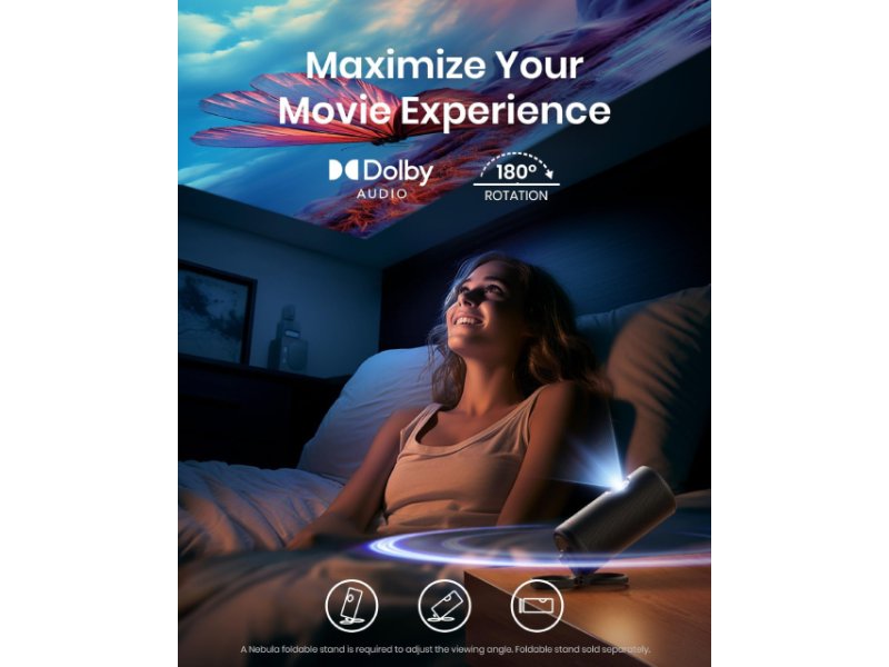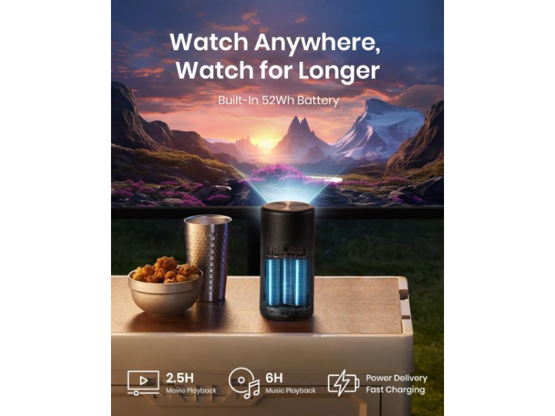 | Ostalo | Dodatne funkcije: Google Cast, Automatic keystone correction, Screen Fit, Google Assistant, Auto-focusing, Google TV 11 sa ugrađenim aplikacijama (Netflix, YouTube, Disney+ i druge), Obstacle Avoidance, Bluetooth zvučnik, DCI-P3 colour gamut (90%), Google Play prodavnica, Nebula Manager aplikacija, Rotacija 180 stepeni Zvučnici: 8W Podržane tehnologije: Dolby Audio, Chromecast Napomena: Baterija 52Wh (do 2.5h) |