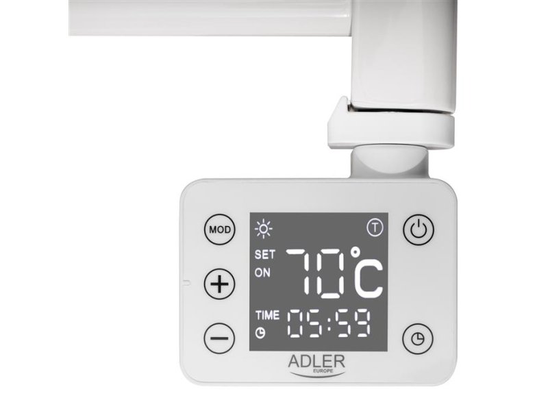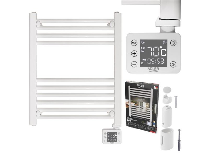 | Karakteristike |  2 režima grejanja: Režim grejanja prostorije i režim grejanja grejnih cevi Temperatura za prostoriju: 0-37°C Temperatura cevi: 40-70°C Dužina jedne grejne cevi: 415 mm Donja cev je uvek hladna i služi kao vešalica Materijal kućišta: Gvoždje Dužina kabla: 1.34 m Dimenzije: 50 x 5.3 x 70 cm Težina: 6.5 kg Boja: Bela Komplet za montažu: Uključen u pakovanje  |
