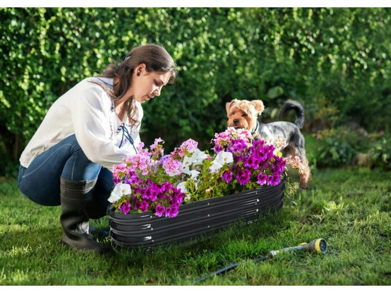 CHOMIK Bastenska zardjinjera za povrce i cvece 180 x 90 x 30 cm, ovalna, antracit