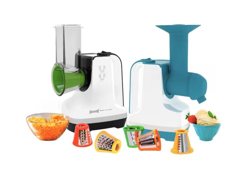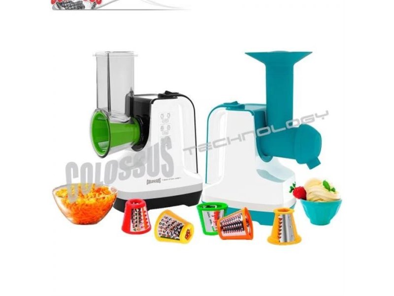 | Karakteristike | Set od 12 delova Nivo buke: 85 db Dva aparata u jednom: 1) Seckalica za povrće, voće, sir Sa 6 dodataka: Tanke kriške Debele kriške Grubo rendanje Fino rendanje Sitno rendanje Dodatak za pomfrit 2) Aparat za sladoled (frozen yoghurt) Dodaci od nerđajućeg čelika Moderna Višenamenska Jednostavna za postavljanje Korišćenje i čišćenje |