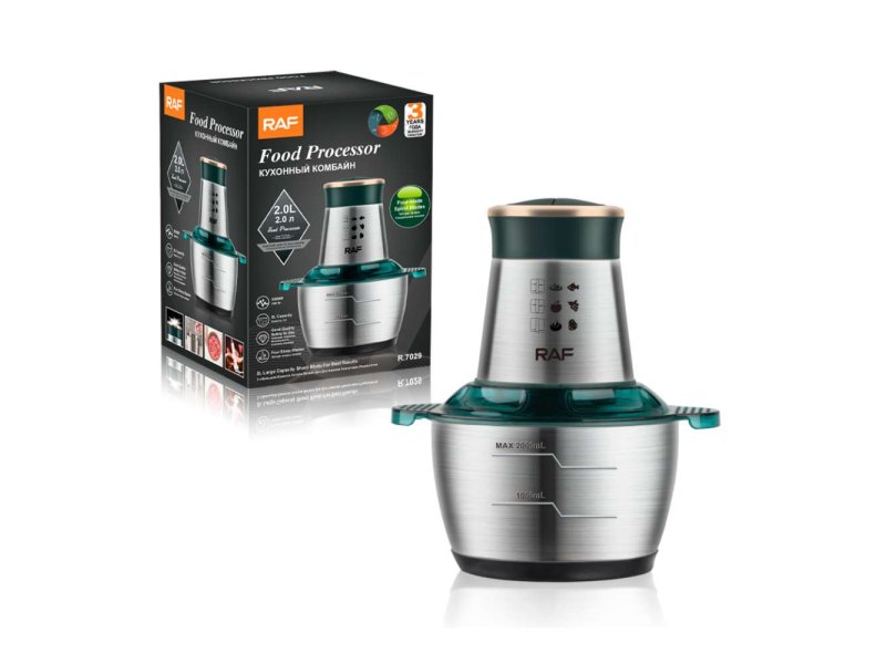 | Karakteristike | Tehničke karakteristike: Kapacitet posude: 2 l Broj brzina: 2 Oštrice: 4 spiralne oštrice Funkcije: Seckanje, mlevenje, blendiranje Glavne prednosti: ✔ Snažan motor od 1000W za brzo i efikasno seckanje ✔ Velika posuda kapaciteta 2L za pripremu većih količina hrane ✔ 4 oštre spiralne oštrice za precizno seckanje i mlevenje ✔ Dve brzine rada za različite vrste namirnica ✔ Praktičan dizajn koji olakšava svakodnevnu upotrebu ✔ Idealan za meso, povrće, luk, orašaste plodove i druge sastojke Sadržaj pakovanja: • RAF R.7029 multipraktik / secko za hranu • Posuda kapaciteta 2L • Set oštrica za seckanje • Poklopac uređaja |