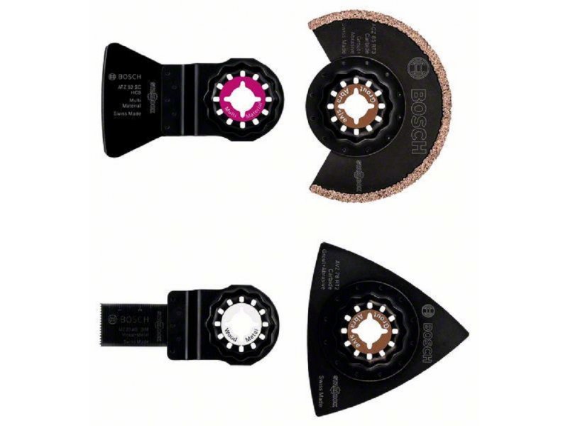 | Karakteristike | Bosch 2608661695 osobine: 4-delni set za keramičke pločice Svestrani set za keramičke pločice za radove renoviranja i pregrađivanja (npr. glodanje fuga između zidnih i podnih pločica, uklanjanje maltera ili lepka za pločice, glodanje manjih isečaka u mekim zidnim pločicama) ACZ 85 RT3 (1x); AVZ 78 RT2 (1x); ATZ 52 SC (1x); AIZ 20 AB (1x) Tehničke karakteristike: Sadržaj garniture: Carbide-RIFF segmentni list testere ACZ 85 RT3 (1x) Sadržaj garniture: Carbide-RIFF brusna ploča AVZ 78 RT2 (1x) Sadržaj garniture: HCS sečivo ATZ 52 SC (1x) Sadržaj garniture: BIM list testere za uranjanje Metal AIZ 20 AB (1x) Pogodno za: Kamen | zidna pločica Kamen | podna pločica |