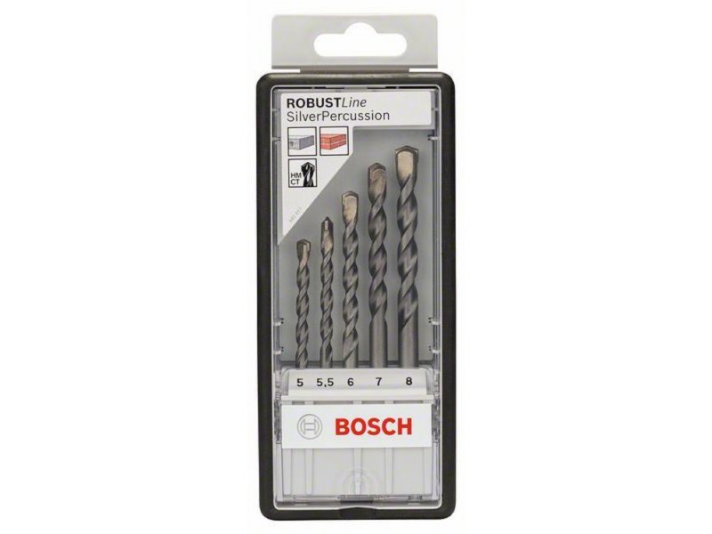 | Karakteristike | Bosch 2607010526 osobine: 5-delni Robust Line set burgija za beton CYL-3 5; 5,5; 6; 7; 8 mm Tehničke karakteristike: Prečnik mm: 5,0 Prečnik mm: 5,5 Prečnik mm: 6,0 Prečnik mm: 7,0 Prečnik mm: 8,0 Radna dužina mm: 50 Radna dužina mm: 50 Radna dužina mm: 60 Radna dužina mm: 60 Radna dužina mm: 80 Ukupna dužina mm: 85 Ukupna dužina mm: 85 Ukupna dužina mm: 100 Ukupna dužina mm: 100 Ukupna dužina mm: 120 Dimenzija(e) garnitura mm: 156.5 x 69.5 x 23 |
