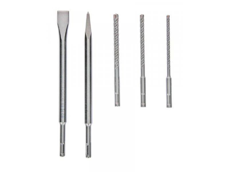 | Karakteristike | Set koji treba da ima svaki majstor koji koristi elektro-pneumatski čekić / hamer. Osobine i prednosti: 5X burgije sa X geometrijom glave od tvrdog metala Pogodan za bušenje i kroz armirani beton Kvalitetan špic i dleto za lakše štemovanje Obim isporuke: Bosch 5-delni set burgija, kataloški broj: 2 607 017 515 Barkod3165140974400 SDS-Plus 5X 6x100x160 mm, 2608833778 SDS-Plus 5X 8x100x160 mm, 2608833789 SDS-Plus 5X 10x100x160 mm, 2608833798 SDS-Plus špic 250 mm, 2608690145 SDS-Plus dleto 250 mm, 2608690144 |