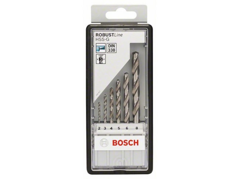 | Karakteristike | Bosch 2607010529 osobine: 6-delni Robust Line set burgija za metal HSS-G, DIN 338, 135° 2; 3; 4; 5; 6; 8 mm, 135° Tehničke karakteristike: Prečnik mm: 2,0 Prečnik mm: 3,0 Prečnik mm: 4,0 Prečnik mm: 5,0 Prečnik mm: 6,0 Prečnik mm: 8,0 Radna dužina mm: 24 Radna dužina mm: 33 Radna dužina mm: 43 Radna dužina mm: 52 Radna dužina mm: 57 Radna dužina mm: 75 Dimenzija(e) garnitura mm: 156.5 x 69.5 x 23 |