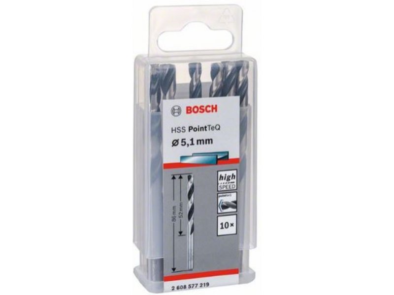 | Karakteristike | Prednosti: Spiralna burgija od brzoreznog čelika velike snage po normi DIN 338 Spiralna burgija sa desnim sečenjem, tip N, 135° vrh burgije Utični kraj odgovara prečniku burgije Sa dve oštrice, dve spirale Produženi životni vek kao rezultat brzog napretka pri bušenju što dovodi do smanjenog trošenja i tupljenja Nizak rizik lomljenja jer je telo burgije napravljeno da bude veoma elastično Brzo uklanjanje špona sa novom spiralom obloženom crnim oksidom Brz i lak start bušenja zahvaljujući samocentrirajućem PointTeQ vrhom koji dozvoljava lak i efikasan početak bušenja Ostaju oštre i zadržavaju izdržljivost Proizvedene po DIN 338 standardu Tehnički podaci: Prečnik (D) mm: 5,1 Radna dužina (L1) mm: 52 Ukupna dužina (L2) mm: 86 Pogodno za: Metali koji sadrže gvožđe | čelik/metal koji sadrži gvožđe Metali koji sadrže gvožđe | legirani/nelegirani čelik Metali koji sadrže gvožđe | sivi liv |