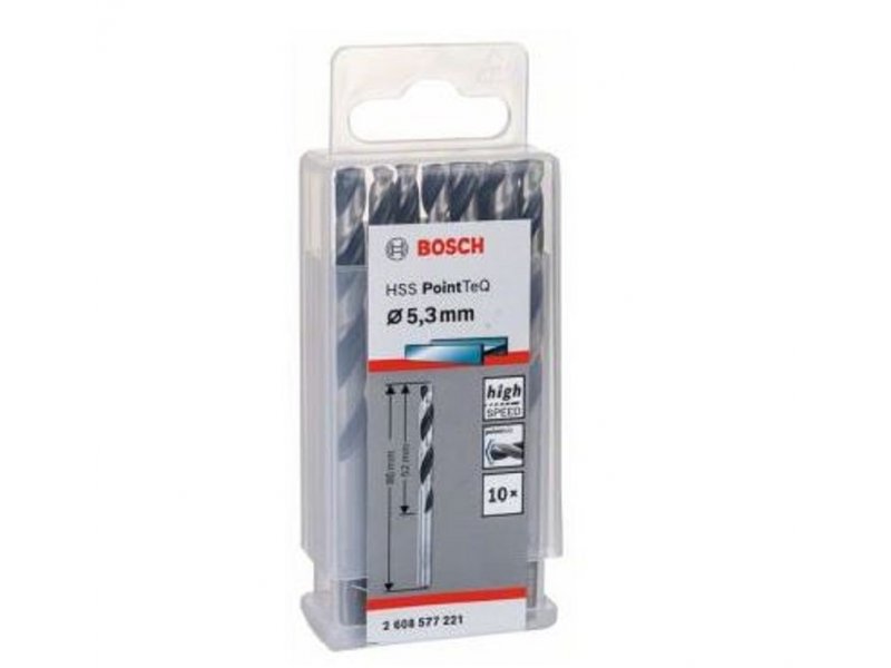 | Karakteristike | Prednosti: Spiralna burgija od brzoreznog čelika velike snage po normi DIN 338 Spiralna burgija sa desnim sečenjem, tip N, 135° vrh burgije Utični kraj odgovara prečniku burgije Sa dve oštrice, dve spirale Produženi životni vek kao rezultat brzog napretka pri bušenju što dovodi do smanjenog trošenja i tupljenja Nizak rizik lomljenja jer je telo burgije napravljeno da bude veoma elastično Brzo uklanjanje špona sa novom spiralom obloženom crnim oksidom Brz i lak start bušenja zahvaljujući samocentrirajućem PointTeQ vrhom koji dozvoljava lak i efikasan početak bušenja Ostaju oštre i zadržavaju izdržljivost Proizvedene po DIN 338 standardu Tehnički podaci: Prečnik (D) mm: 5,3 Radna dužina (L1) mm: 52 Ukupna dužina (L2) mm: 86 Pogodno za: Metali koji sadrže gvožđe | čelik/metal koji sadrži gvožđe Metali koji sadrže gvožđe | legirani/nelegirani čelik Metali koji sadrže gvožđe | sivi liv |