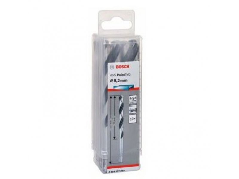 | Karakteristike | Prednosti: Spiralna burgija od brzoreznog čelika velike snage po normi DIN 338 Spiralna burgija sa desnim sečenjem, tip N, 135° vrh burgije Utični kraj odgovara prečniku burgije Sa dve oštrice, dve spirale Produženi životni vek kao rezultat brzog napretka pri bušenju što dovodi do smanjenog trošenja i tupljenja Nizak rizik lomljenja jer je telo burgije napravljeno da bude veoma elastično Brzo uklanjanje špona sa novom spiralom obloženom crnim oksidom Brz i lak start bušenja zahvaljujući samocentrirajućem PointTeQ vrhom koji dozvoljava lak i efikasan početak bušenja Ostaju oštre i zadržavaju izdržljivost Proizvedene po DIN 338 standardu Tehnički podaci: Prečnik (D) mm: 8,2 Radna dužina (L1) mm: 75 Ukupna dužina (L2) mm: 117 Pogodno za: Metali koji sadrže gvožđe | čelik/metal koji sadrži gvožđe Metali koji sadrže gvožđe | legirani/nelegirani čelik Metali koji sadrže gvožđe | sivi liv |