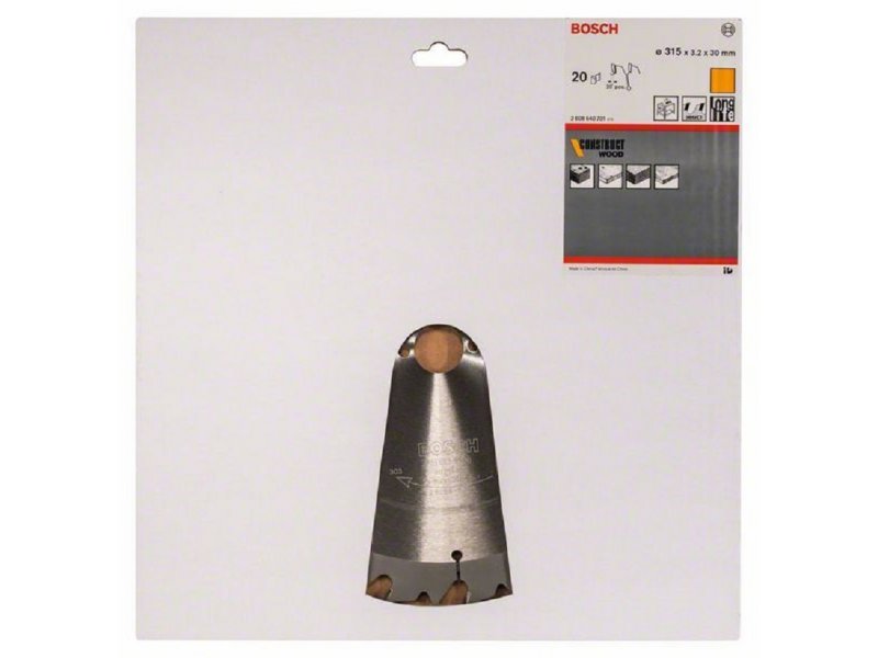 | Karakteristike | Bosch 2608640701 osobine: 315 x 30 x 3,2 mm; 20 Tehničke karakteristike: Spoljni prečnik mm: 315 Otvor mm: 30 Širina sečenja (b1) mm / debljina osnovnog lista (b2) mm: 3.2/2.2 Broj zubaca: 20 Oblik zubaca: ATB Maks. broj obrtaja (o/min): 5000 Rezultat sečenja: 1 NL/prečnik TKS: 7/42 Pogodno za: Drvo | daske oplate Drvo | ploča od iverice Drvo | akustične ploče Drvo | ploče za laganu konstrukciju Beton | porozni beton Drvo | građevinsko drvo/konstrukciono drvo/drvene grede |
