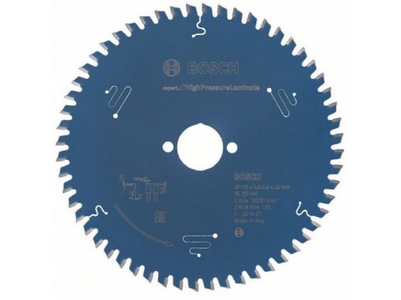 | Karakteristike | Bosch 2608644135 osobine: 190 x 30 x 2,6 mm, 56 Tehničke karakteristike: Spoljni prečnik mm: 190 Otvor mm: 30 Širina sečenja (b1) mm / debljina osnovnog lista (b2) mm: 2.6/1.6 Broj zubaca: 56 Oblik zubaca: HLTCG Maks. broj obrtaja (o/min): 10000 Rezultat sečenja: 4 NL/prečnik TKS: 2/7/42 Rezni ugao ° w1: 0 Leđni ugao ° w2: 17 Pogodno za: Drvo | presovano slojevito drvo |