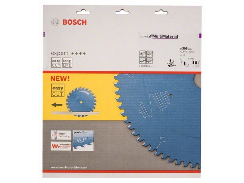 | Karakteristike | Bosch 2608642529 osobine: 305 x 30 x 2,4 mm, 96 Tehničke karakteristike: Spoljni prečnik mm: 305 Otvor mm: 30 Širina sečenja (b1) mm / debljina osnovnog lista (b2) mm: 2.4/1.8 Broj zubaca: 96 Oblik zubaca: TCG Maks. broj obrtaja (o/min): 6200 Rezultat sečenja: 4 Rezni ugao ° w1: -5 Leđni ugao ° w2: 15 Pogodno za: Drvo | obložene ploče/sendvič-paneli Drvo | MDF ploča obložena Plastika | epoksi (epoksidna smola) Metal koji ne sadrži gvožđe | aluminijum Metal koji ne sadrži gvožđe | legure Metal koji ne sadrži gvožđe | bakar Drvo | ploča od iverice Drvo | akustične ploče Drvo | ploče za laganu konstrukciju |