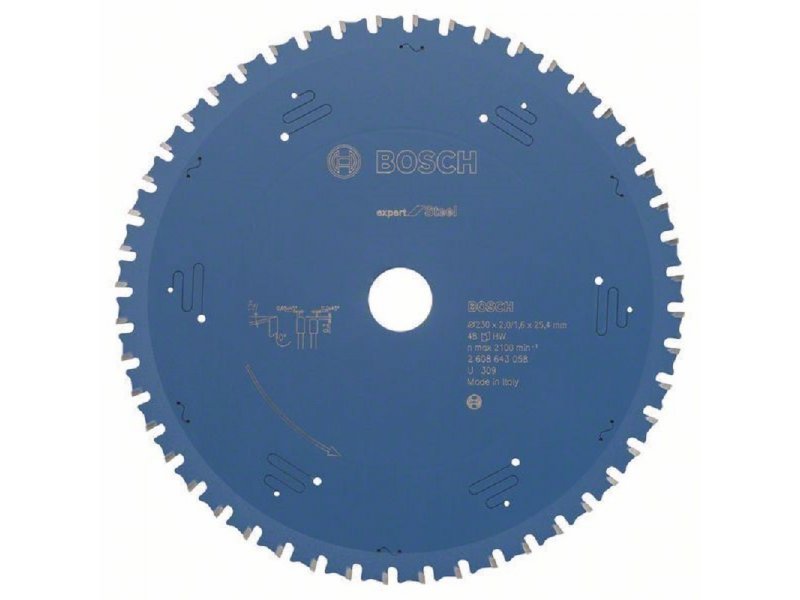| Karakteristike | Bosch 2608643058 osobine: 230 x 25,4 x 2,0 mm, 48 Tehničke karakteristike: Spoljni prečnik coli: 9 1/4 Spoljni prečnik mm: 230 Otvor mm: 25,4 Širina sečenja (b1) mm / debljina osnovnog lista (b2) mm: 2.0/1.6 Broj zubaca: 48 Oblik zubaca: MTCG Maks. broj obrtaja (o/min): 2100 Rezultat sečenja: 3 Rezni ugao ° w1: 0 Leđni ugao ° w2: 12 Pogodno za: Metali koji sadrže gvožđe | čelik/metal koji sadrži gvožđe |