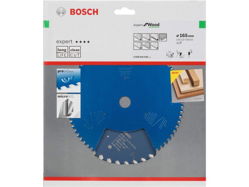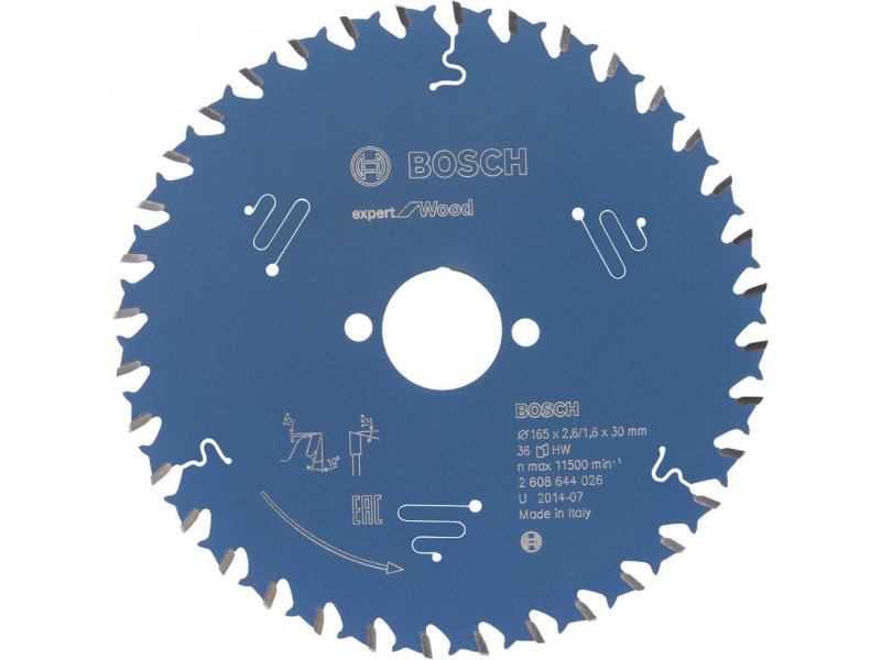 | Karakteristike | Tehnički podaci Spoljni prečnik mm: 165 Otvor mm: 30 Širina sečenja (b1) mm / debljina osnovnog lista (b2) mm: 2,6/1,6 Broj zubaca: 36 Oblik zubaca: ATB Maks. broj obrtaja (o/min): 11500 Rezultat sečenja: 3 NL/prečnik TKS: 2/7/42 Rezni ugao ° w1: 10 Leđni ugao ° w2: 15 Pogodno za: Drvo | ploča od iverice Drvo | akustične ploče Drvo | ploče za laganu konstrukciju Drvo | kompozitni materijali Drvo | meko drvo Drvo | tvrdo drvo/masivno drvo Drvo | presovano slojevito drvo Drvo | šperploča/stolarska ploča Drvo | MDF ploča obložena |