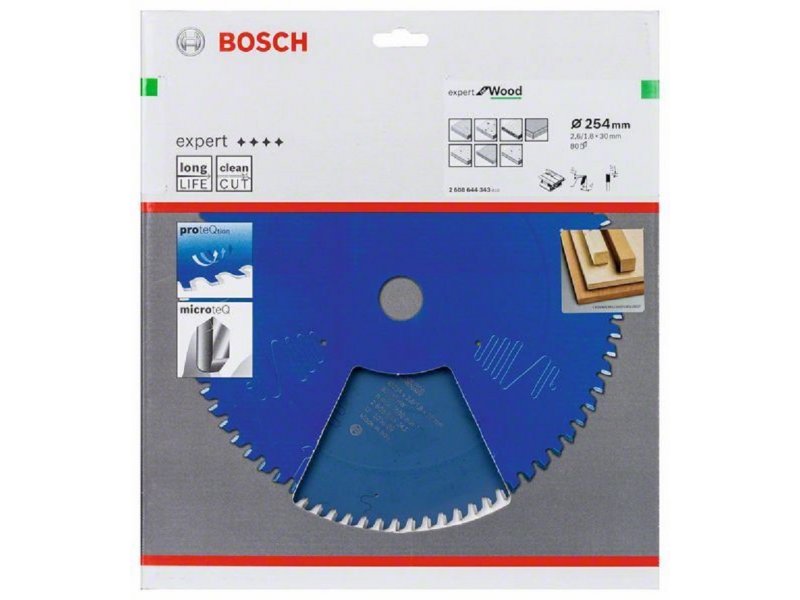 | Karakteristike | Tehničke karakteristike: Spoljni prečnik mm: 254 Otvor mm: 30 Širina sečenja (b1) mm / debljina osnovnog lista (b2) mm: 2.6/1.8 Broj zubaca: 80 Oblik zubaca: ATB Maks. broj obrtaja (o/min): 7500 Rezultat sečenja: 4 NL/prečnik TKS: 2/7/42 NL/prečnik TKS: 2/9,5/46,5 NL/prečnik TKS: 2/9/46 NL/prečnik TKS: 2/10/60 Rezni ugao ° w1: 5 Leđni ugao ° w2: 15 |