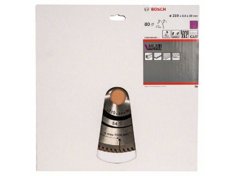 | Karakteristike | Bosch 2608640445 osobine: 210 x 30 x 2,5 mm; 80 Tehničke karakteristike: Spoljni prečnik mm: 210 Otvor mm: 30 Širina sečenja (b1) mm / debljina osnovnog lista (b2) mm: 2.5/1.8 Broj zubaca: 80 Oblik zubaca: HLTCG Maks. broj obrtaja (o/min): 7000 Rezultat sečenja: 3 Pogodno za: Drvo | ploča od iverice Drvo | akustične ploče Drvo | ploče za laganu konstrukciju Drvo | MDF ploča obložena Plastika | epoksi (epoksidna smola) Metal koji ne sadrži gvožđe | aluminijum Metal koji ne sadrži gvožđe | legure Metal koji ne sadrži gvožđe | bakar |
