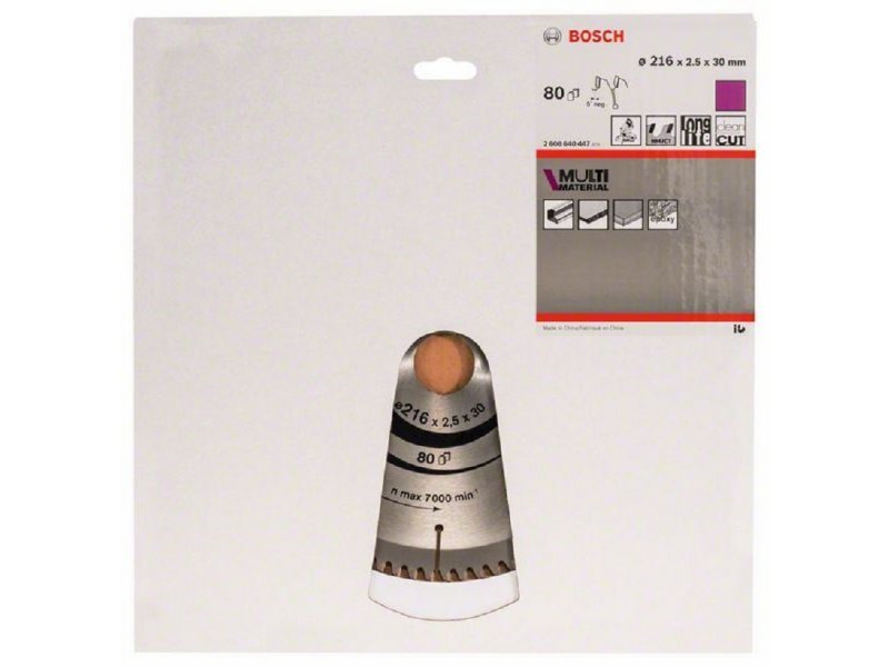 | Karakteristike | Bosch 2608640447 osobine: 216 x 30 x 2,5 mm; 80 Tehničke karakteristike: Spoljni prečnik coli: 8 1/2 Spoljni prečnik mm: 216 Otvor mm: 30 Širina sečenja (b1) mm / debljina osnovnog lista (b2) mm: 2.5/1.8 Broj zubaca: 80 Oblik zubaca: HLTCG Maks. broj obrtaja (o/min): 7000 Rezultat sečenja: 3 Pogodno za: Drvo | ploča od iverice Drvo | akustične ploče Drvo | ploče za laganu konstrukciju Drvo | MDF ploča obložena Plastika | epoksi (epoksidna smola) Metal koji ne sadrži gvožđe | aluminijum Metal koji ne sadrži gvožđe | legure Metal koji ne sadrži gvožđe | bakar |