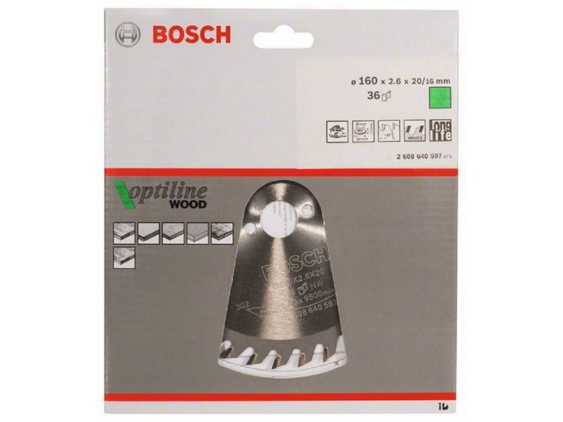 | Karakteristike | Bosch 2608640597 osobine: 160 x 20/16 x 2,6 mm, 36 Tehničke karakteristike: Spoljni prečnik mm: 160 Otvor mm: 20 Otvor sa redukcionim prstenom mm: 16 Širina sečenja (b1) mm / debljina osnovnog lista (b2) mm: 2.6/1.6 Broj zubaca: 36 Oblik zubaca: ATB Maks. broj obrtaja (o/min): 9500 Rezultat sečenja: 3 NL/prečnik TKS: 6/32 Pogodno za: Drvo | ploča od iverice Drvo | akustične ploče Drvo | ploče za laganu konstrukciju Drvo | kompozitni materijali Drvo | meko drvo Drvo | tvrdo drvo/masivno drvo Drvo | presovano slojevito drvo Drvo | šperploča/stolarska ploča Drvo | MDF ploča obložena |