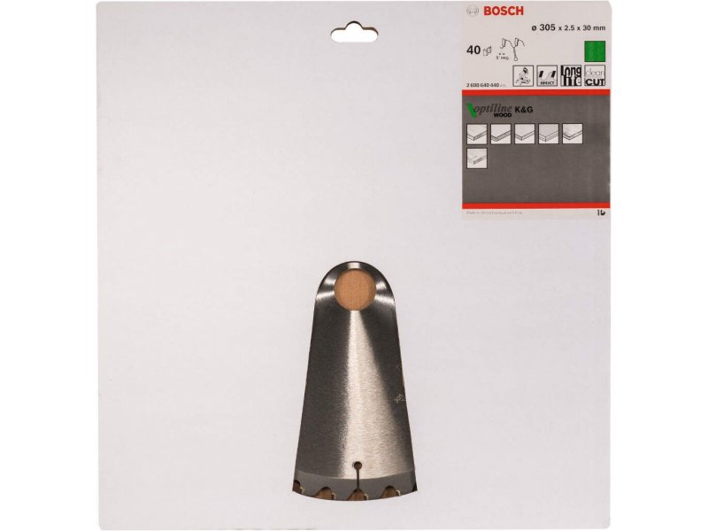 | Karakteristike | Tehnički podaci Spoljni prečnik coli: 12 Spoljni prečnik mm: 305 Otvor mm: 30 Širina sečenja (b1) mm / debljina osnovnog lista (b2) mm: 2,5/1,8 Broj zubaca: 40 Oblik zubaca: ATB/N Maks. broj obrtaja (o/min): 5000 Rezultat sečenja: 2 Pogodno za: Drvo | ploča od iverice Drvo | akustične ploče Drvo | ploče za laganu konstrukciju Drvo | kompozitni materijali Drvo | meko drvo Drvo | tvrdo drvo/masivno drvo Drvo | presovano slojevito drvo Drvo | šperploča/stolarska ploča Drvo | MDF ploča obložena |