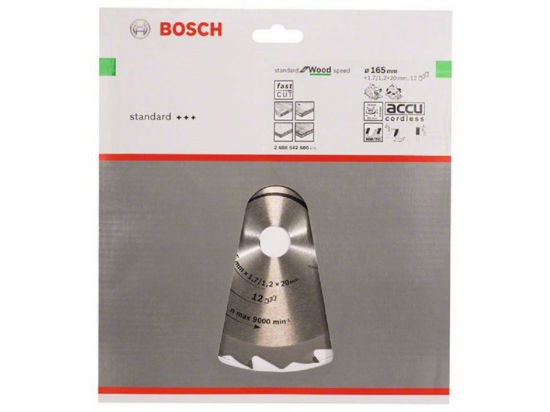 | Karakteristike | Bosch 2608642600 osobine: 165 x 20/16 x 1,7 mm, 12 Tehničke karakteristike: Spoljni prečnik mm: 165 Otvor mm: 20 Otvor sa redukcionim prstenom mm: 16 Širina sečenja (b1) mm / debljina osnovnog lista (b2) mm: 1.7/1.2 Broj zubaca: 12 Oblik zubaca: FT-ATB (HF) Maks. broj obrtaja (o/min): 9000 Rezultat sečenja: 1 Pogodno za: Drvo | daske oplate Drvo | ploča od iverice Drvo | akustične ploče Drvo | ploče za laganu konstrukciju Drvo | meko drvo Drvo | tvrdo drvo/masivno drvo |