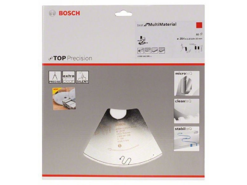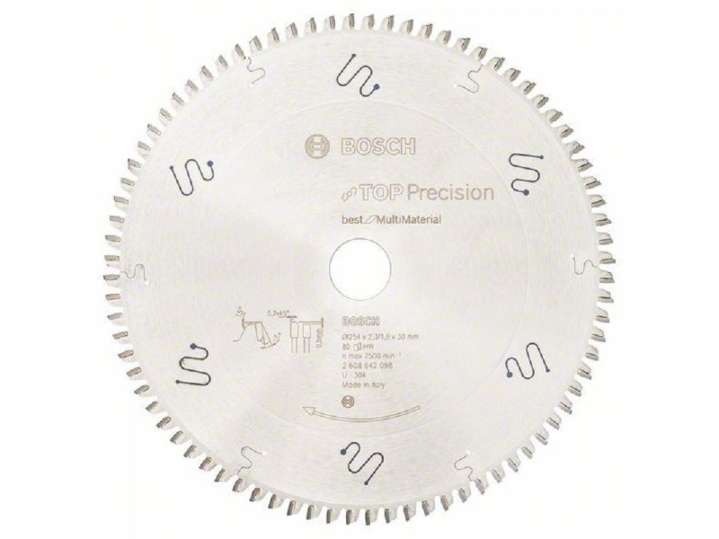 | Karakteristike | Bosch 2608642098 osobine: 254 x 30 x 2,3 mm, 80 Tehničke karakteristike: Spoljni prečnik mm: 254 Otvor mm: 30 Širina sečenja (b1) mm / debljina osnovnog lista (b2) mm: 2.3/1.8 Broj zubaca: 80 Oblik zubaca: HLTCG Maks. broj obrtaja (o/min): 7500 Rezultat sečenja: 4 Rezni ugao ° w1: -5 Leđni ugao ° w2: 15 Pogodno za: Drvo | ploča od iverice Drvo | akustične ploče Drvo | ploče za laganu konstrukciju Drvo | MDF ploča obložena Plastika | epoksi (epoksidna smola) Metal koji ne sadrži gvožđe | aluminijum Metal koji ne sadrži gvožđe | legure Metal koji ne sadrži gvožđe | bakar |