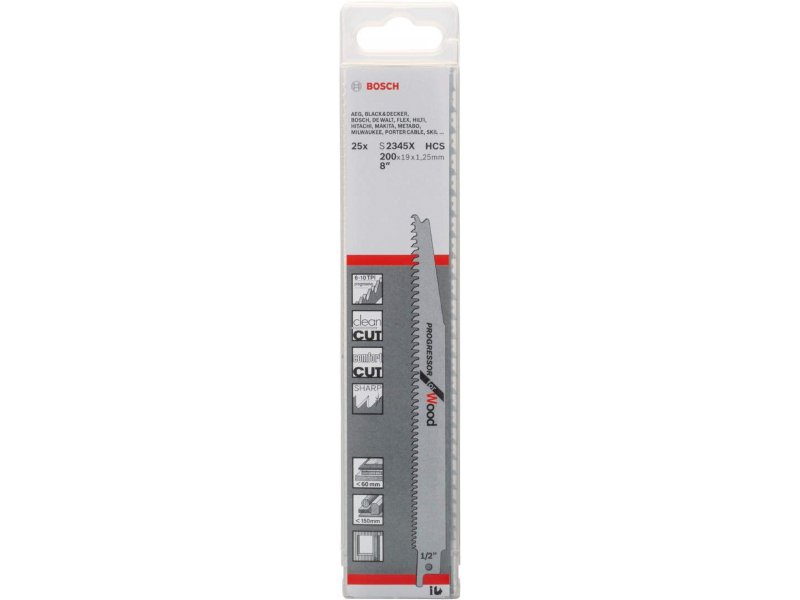 | Karakteristike | Tehnički podaci Materijal: HCS Dužina [mm]: 200 Maksimalni kapacitet sečenja [mm]: 150 Korak zubaca [mm] / TPI: 2,5 - 4,3 / 6-10 Područja primene: Konstrukciono drvo (<150 mm), ploče: iverica, MDF (6 - 60 mm), šperploče, plastika (<150 mm), drveni zid (<150 mm) Pakovanje: 25 kom. Pogodno za: Drvo | građevinsko drvo/konstrukciono drvo/drvene grede Drvo | šperploča/stolarska ploča Drvo | MDF ploča neobložena Drvo | ploča od iverice |