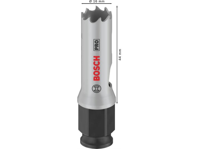 | Karakteristike | Prečnik: 16 mm Radna dužina: 44 mm Pogodno za: Meko drvo, Gips, Plastiku, Metalne cevi i profile, Obojene metale |