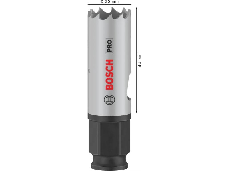 | Karakteristike | Prečnik: 20 mm Radna dužina: 44 mm Pogodno za: Meko drvo, Gips, Plastiku, Metalne cevi i profile, Obojene metale |