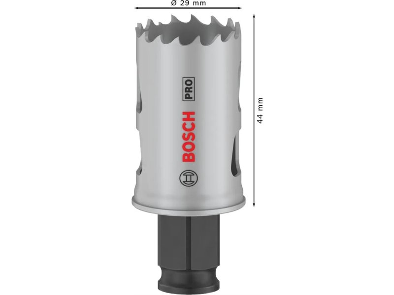 | Karakteristike | Prečnik: 29 mm Radna dužina: 44 mm Pogodno za: Meko drvo, Gips, Plastiku, Metalne cevi i profile, Obojene metale |